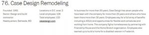 Case Design was heralded for its vast array of employee benefits, dedication to community service, and for fostering long-lasting careers. Specifically, The Washington Post states that: